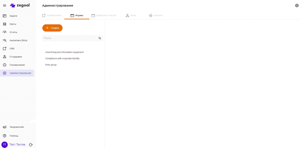 В этой вкладке можно создать, удалить, редактировать данные новой или уже существующей формы. Подробнее о работе с формами читайте по ссылке.