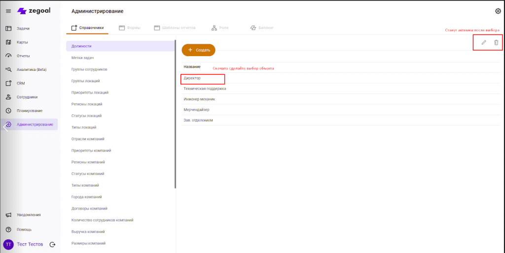 Например, в справочнике должностей вы создаете те должности, которые есть в вашей компании. Указав должность уборщика для сотрудника, вы будете видеть ее в списке сотрудников при назначении заданий и не ошибетесь, назначив уборку сотруднику, в чьи должностные обязанности это не входит.