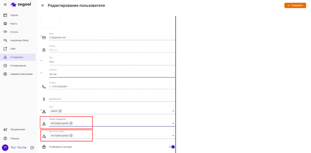 Справочник «Группы сотрудников» позволяют вам с удобством сортировать сотрудников по подразделениям и выполняемым задачам, а также разделять права доступа. Пользователь может входить в группу, а также, если у него есть права менеджера – быть руководителем группы. Установить пользователя, как руководителя группы можно в свойствах пользователя, поле “Доступные группы”. Администраторы считаются руководителями всех сотрудников, для них не нужно назначать “Доступные группы”.