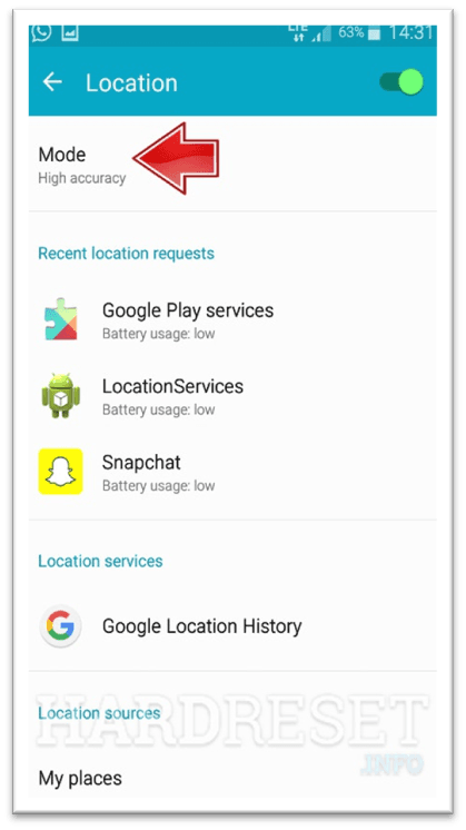 3. Настройки →Местоположение → Режим →Высокая точность→ Вкл