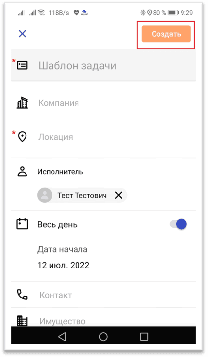 Поля контакт, имущество и описание не являются обязательными, если не установлено Администратором.