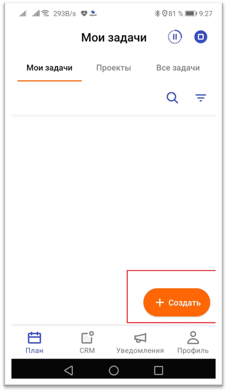 Для создания задачи перейдите на вкладку План мобильного приложения и нажмите кнопку Создать.