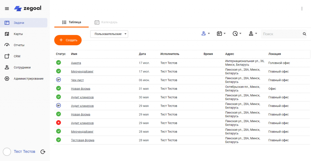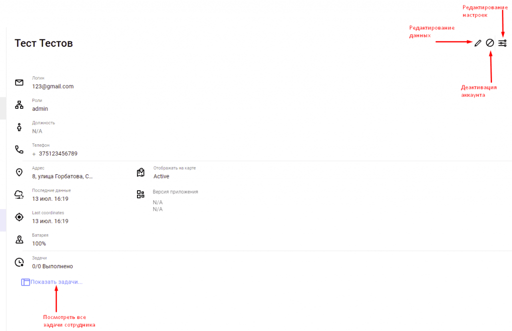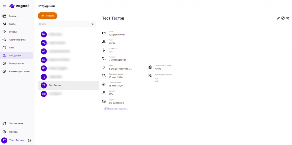 В данном разделе выводится информация обо всех сотрудниках вашей компании, их местонахождении и задачах.